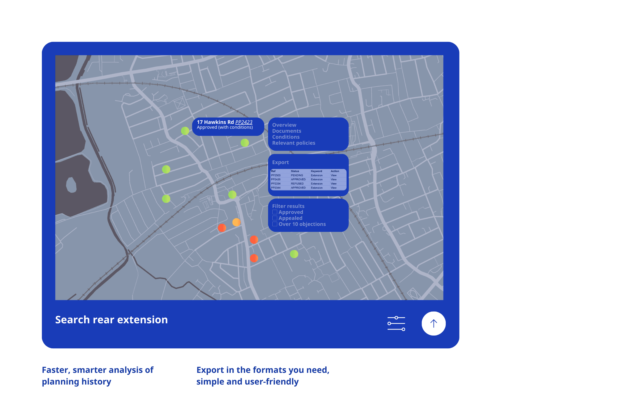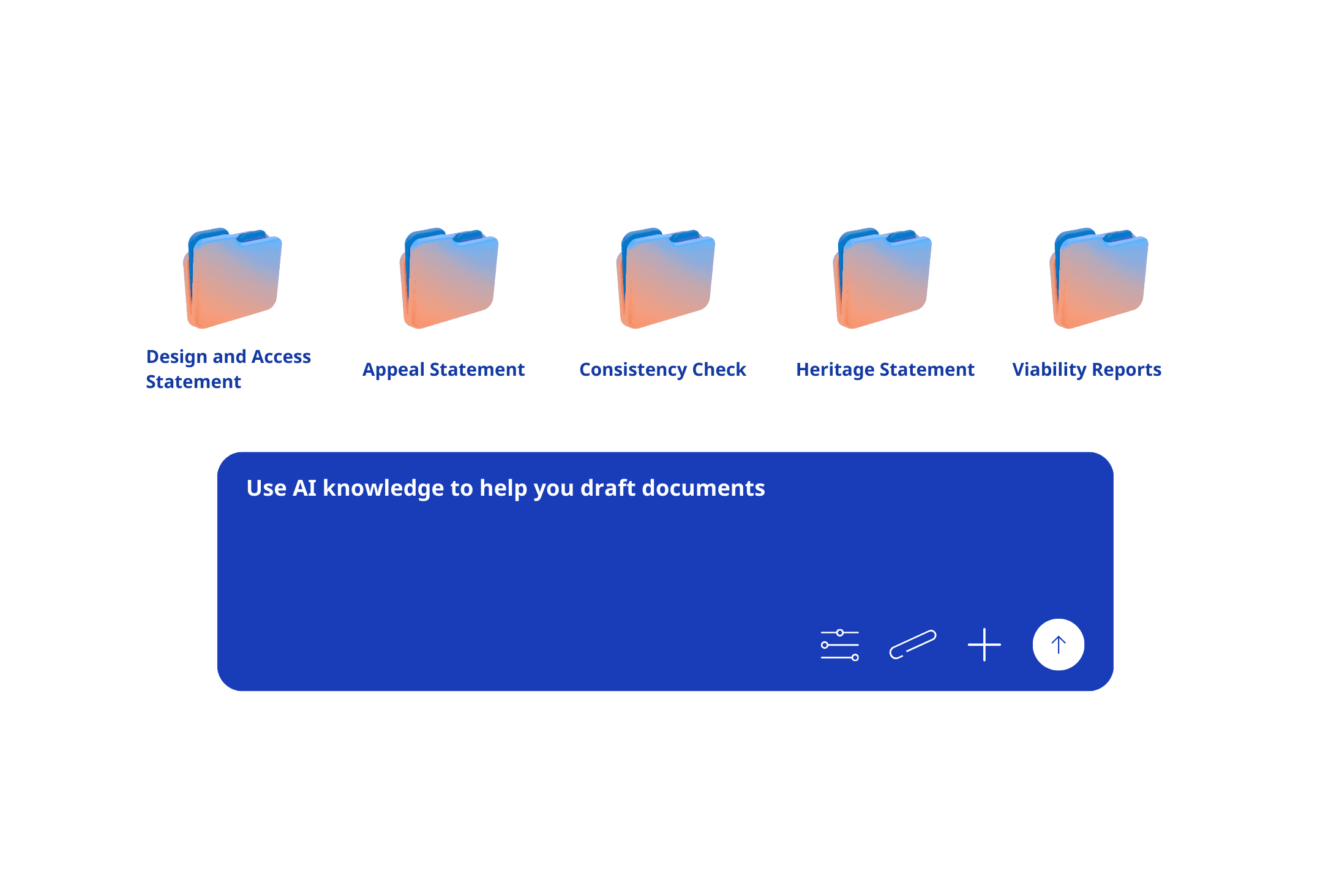 Our models analyse local planning policy, previous applications, validation checklists, and your own documents to flag likely issues, suggest missing information, and automatically structure planning statements. You remain fully in control, the AI provides drafts and checks that you can review, edit, and approve.